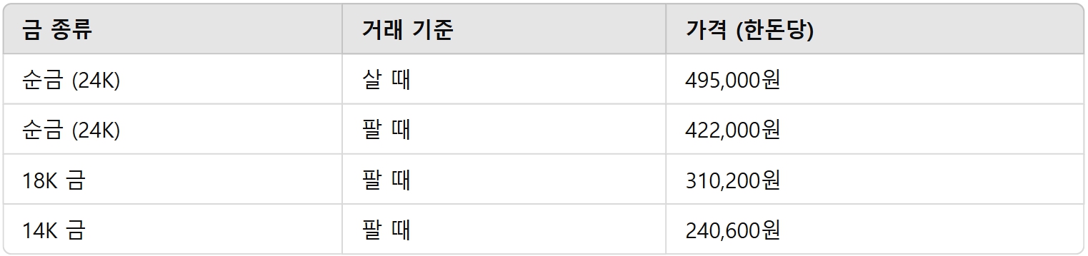 - 순금 (24K) 팔 때 422,000원